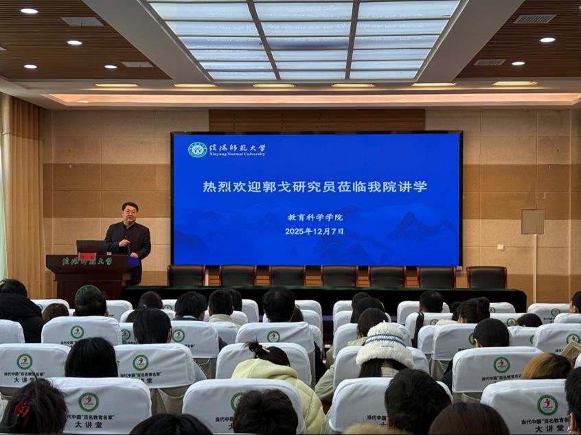 报告伊始,郭戈结合自身信阳成长经历,追溯学术起点。他坦言早年对命题作文的疏离,促使其大学时聚焦“学习兴趣” 研究,本科论文《论培养学生兴趣》中便提出 “没有兴趣就没有学习” 的核心观点。他强调教育需平衡兴趣激发与教学目标,引导学生从 “有趣” 走向 “志趣”,同时批判 “教育无目的论”,主张教育应发挥引导作用而非盲从兴趣,此后 “兴趣教育” 成为其学术主线并形成专著《兴趣教育》。
