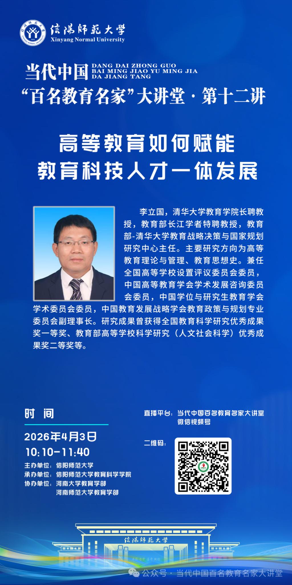 【学术预告】当代中国“百名教育名家”大讲堂·第十二讲