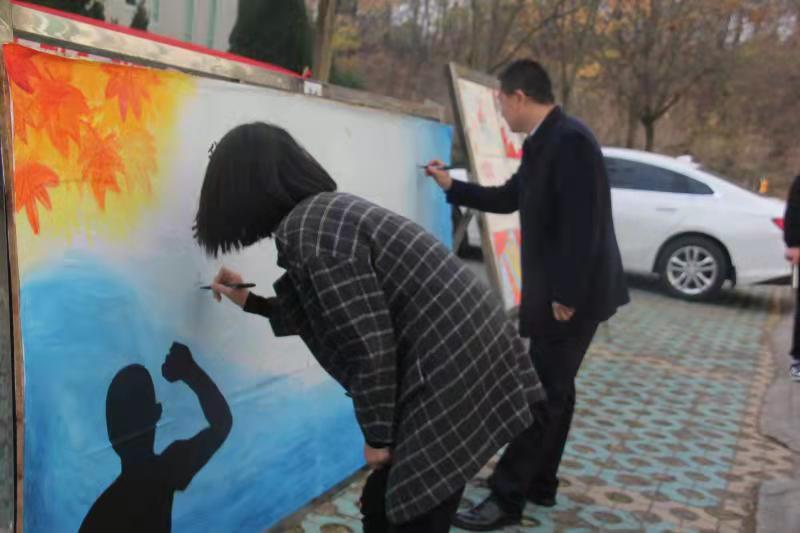 时间:2021-11-27 21:19:33 来源:教科院新闻部 作者:马玉娇 朱亚彤 阅读: 次11月27日,williamhill威廉希尔开展“描绘法治社会,弘扬宪法精神”系列活动,活动通过绘制展板和横幅的形式进行,党委副书记董银银,团委老师牛洁楠以及各班班长、团支书于今日进行“我忠于中华人民共和国宪法,维护宪法权威”承诺签字仪式。