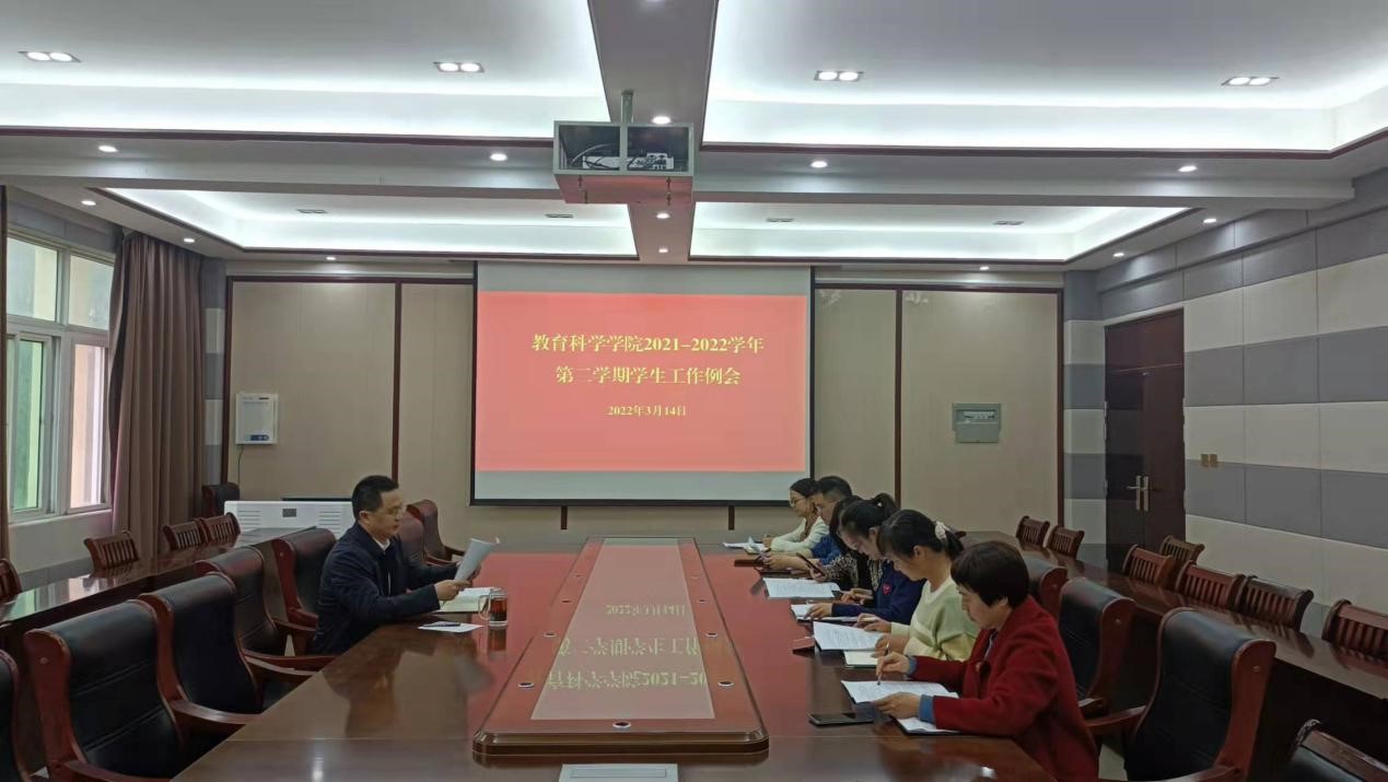 时间:2022-03-17 18:15:36 来源:教科院新闻部 作者:马玉娇 周媛媛 刘至涵 阅读: 次为加强工作谋划,统筹推进工作落实,促进教科院学生工作再上新台阶,3月14日,学院在教科楼402会议室召开2021—2022学年第二学期第3次学生工作会议。党委副书记董银银及全体专职辅导员参加会议。