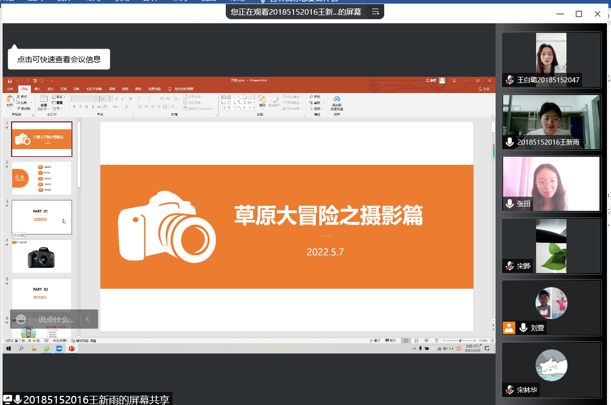 为了增强参赛选手对比赛流程的熟悉度,5月20日上午,williamhill威廉希尔教育技术学专业分别在教科楼303、410会议室举办“2022年第十五届中国大学生计算机设计大赛”省赛线上模拟赛。本次比赛采取腾讯会议的方式,以老师提问、学生演示并答辩的流程线上进行。来自我院教育技术学专业的2018级、2019级和2020级参赛学生在领队老师刘萱、刘琦、宋晔的指导下,认真了解比赛流程,积极准备参加比赛。