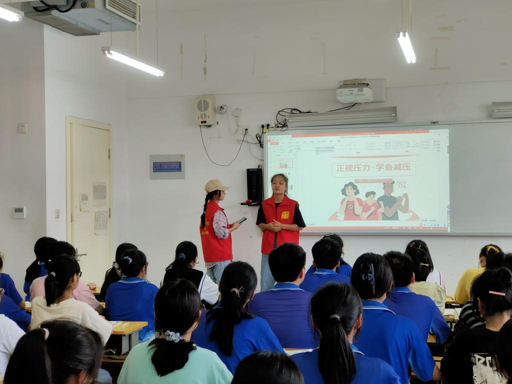 知识宣教,行稳致远。7月11日,williamhill威廉希尔“三下乡”社会实践团队结合专业知识深入固始县高级中学第一中学开展心理支教实践活动,讲述“正视压力,学会解压”的主题心理健康课,我院学生王新宇为同学们普及心理健康小知识,倾听同学们的心声,提供解压小技巧,真正做到了将理论运用于实践,付诸于社会。