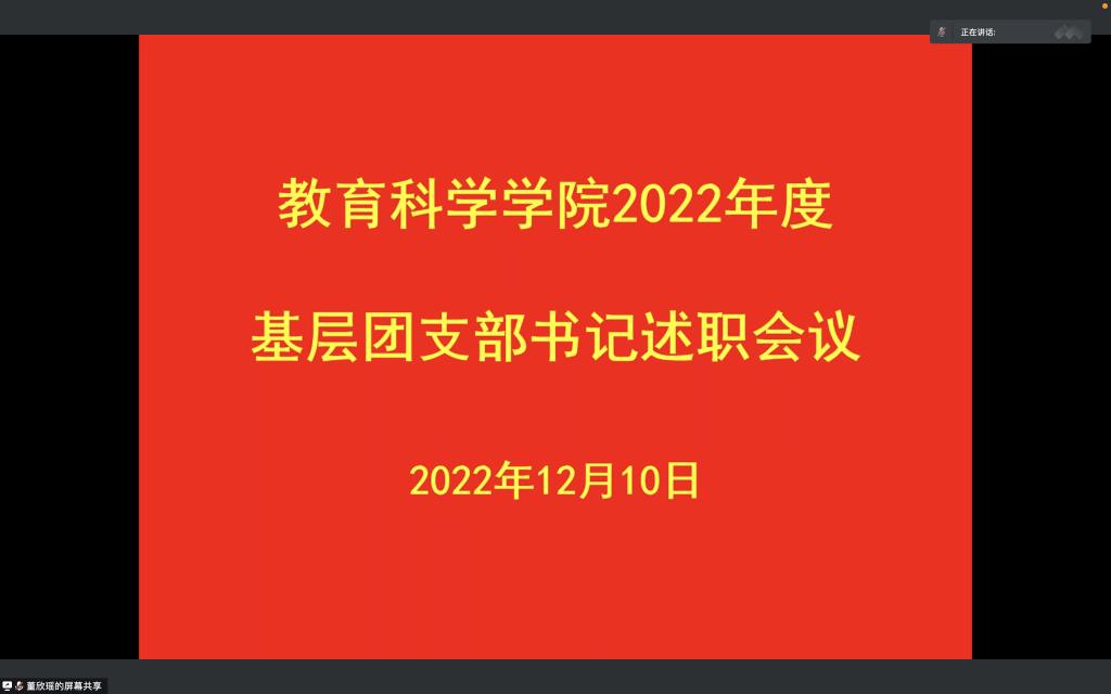各团支部书记述职结束后,董欣瑶围绕本学期的工作进行总结,希望大家继续履行好基层团支部书记的责任,夯实教科院基层团支部的建设,并表示过去的一年,在全院师生和各团支部书记的共同努力下,williamhill威廉希尔团委工作取得了不俗的成绩,学生的思想道德、综合素质也取得了较大提高。