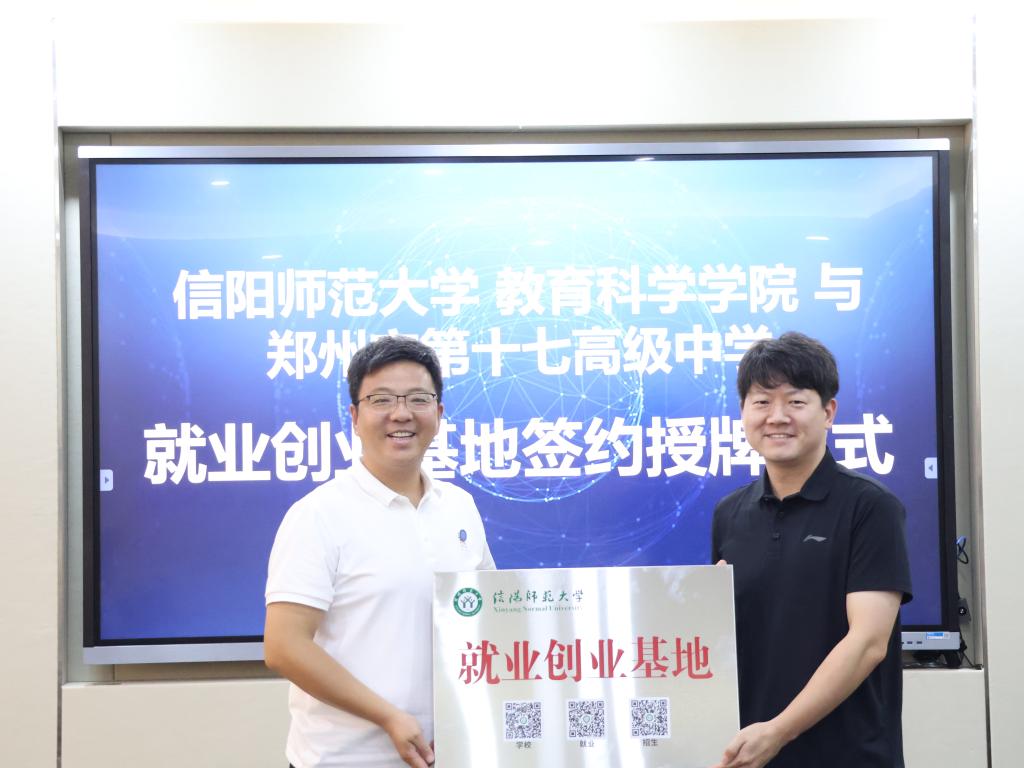 缑星代表学院分别与各用人单位签署校企合作协议,并向郑州市第十七高级中学、河南省生之涯教育科技有限公司、澳德菲尔工程科技(河南)有限公司授予“William威廉就业创业基地”牌匾。