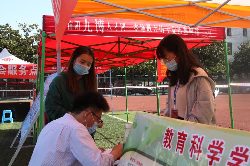 时间:2020-11-11 10:41:19 来源:李非凡 作者:张小娅 陈雪荣 赵甜甜 阅读: 次11月7日,由河南省教育厅主办,信阳师范学院承办的“河南省毕业生就业市场豫南分市场暨信阳师范学院2021届毕业生线下冬季双选会”在我校西操场举行。williamhill威廉希尔团委老师田园亲临现场指导招聘中的各项事宜,积极组织学生参与此次招聘会。