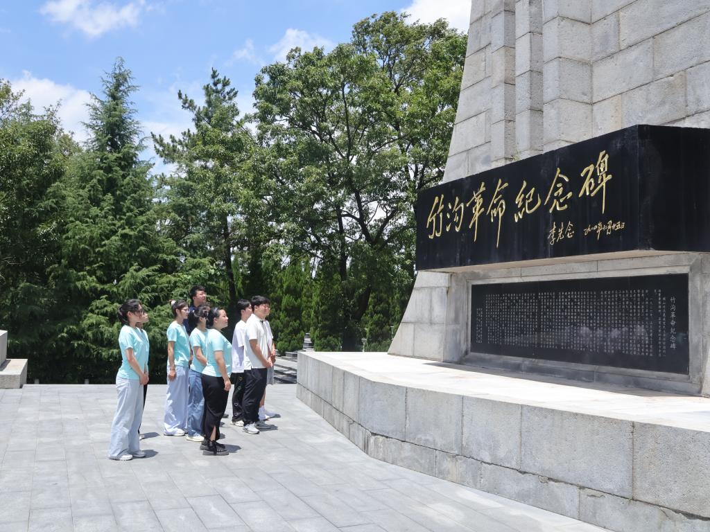 肃穆的竹沟革命烈士陵园内,苍松翠柏守护着百余位英魂。师生们列队肃立,向长眠于此的烈士们敬献白花、默哀追思。从年轻的游击队员到基层党员干部,他们的生命永远定格在为民族独立和人民解放而奋斗的炽热年华。每一块无声的墓碑,都成为一堂无声的党课,让同学们深刻体悟到今日的“岁月静好”,是无数先辈用热血与生命铸就的担当丰碑。