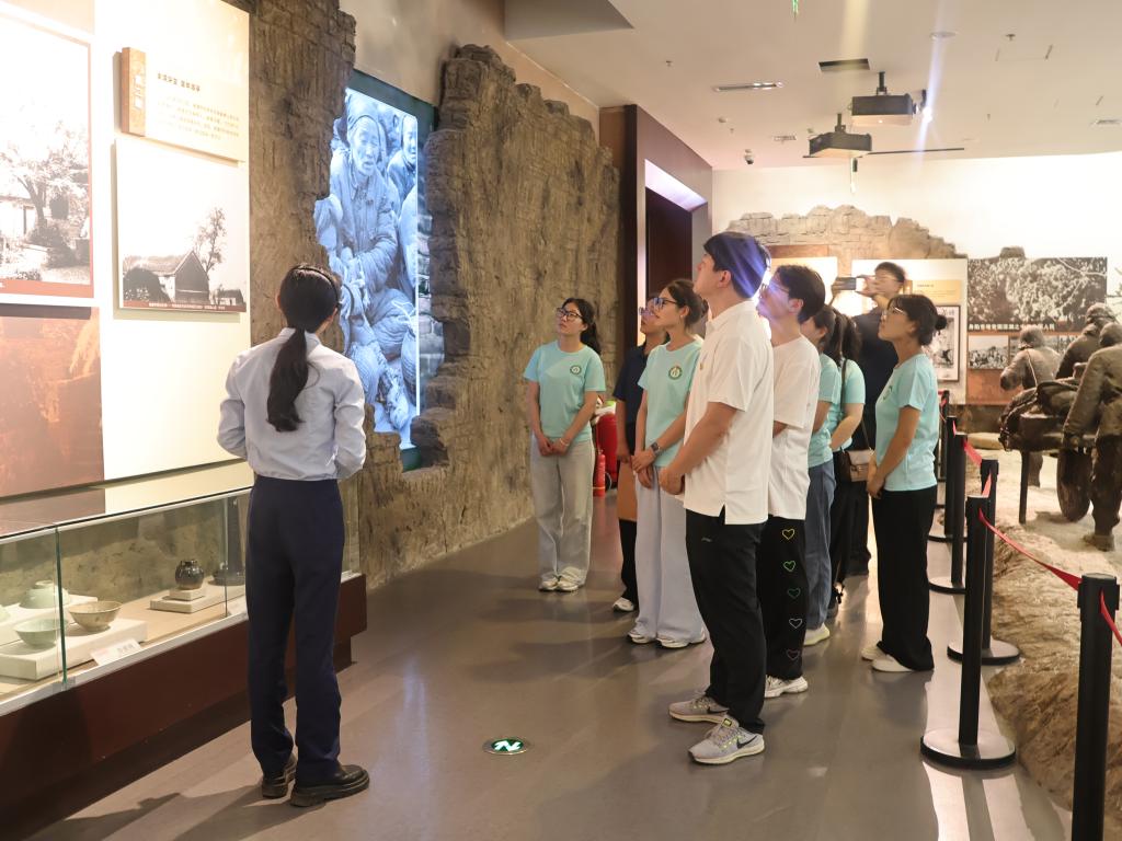 实践团队首站抵达被誉为“小延安”的竹沟革命纪念馆。作为豫南革命根据地的核心阵地,馆内珍藏的泛黄手稿、锈迹斑驳的武器以及逼真的斗争场景复原,生动再现了党领导军民开辟根据地、发动群众英勇抗战的壮阔历史画卷。师生们在此驻足凝思,深刻理解了在民族危亡之际,革命星火何以在党的坚强领导下迅速形成燎原之势,深切感悟到早期共产党人坚定的理想信念和卓越的组织领导力。