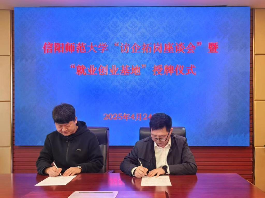 缑星代表学院与信阳同合车轮有限公司人事部经理杨召利签订了合作协议书,房加帅代表学校授予“William威廉就业创业基地”牌匾。