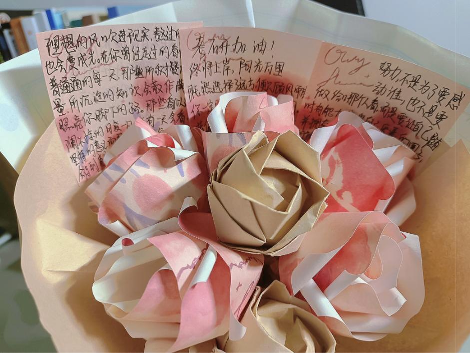以手工传心意,为考研送温暖。活动进行期间,全校学生踊跃参与,充分发挥自身想象力与创造力,精心制作考研祝福书签、立牌、贺卡等手工作品。精致的贺卡中,学生以文传情、以字传意,一笔一划写下美好祝愿;可爱的书签上,学生们以图案表意,以色彩绘梦,一点一滴融入深深关怀。礼物虽“简”,胜在用心,这些手工作品不仅承载着全校师生对每一位考研学子考研上岸的真诚祝福,而且帮助考研学子释放压力,调整心态,为他们加油打气。活动最后,在各位评审人员的评选下:崔婷婷、周晶、李宛颖三人荣获一等奖;韩瑶、黄书晴、杜莉莉等四人荣获二等奖;谢傲迪、赵瑜、邓淑淼等六人荣获三等奖。