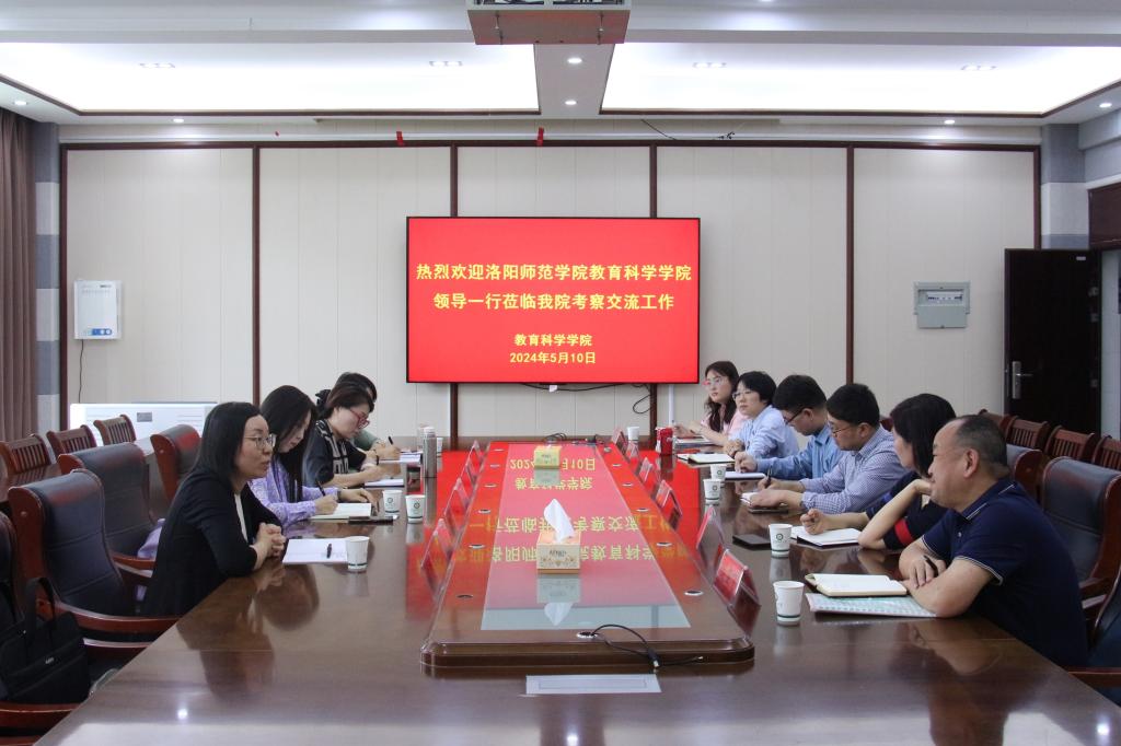 时间:2024-05-11 11:43:50 来源:教科院新闻宣传中心 作者:郭鑫瑶 祐亚菊 阅读: 次5月10日,洛阳师范学院williamhill威廉希尔副院长赵丹妮、教育学系主任杨红军、小学教育系主任郭颖、心理学系主任毛燕霞一行来我院考察交流,交流座谈会于教科402会议室举行,williamhill威廉希尔副院长郭勇、教育学系主任黄亚栋、心理学系主任刘湍丽、应用心理学系主任丁倩,教师教育学院小学教育系主任连亚飞出席会议。会议由郭勇主持。