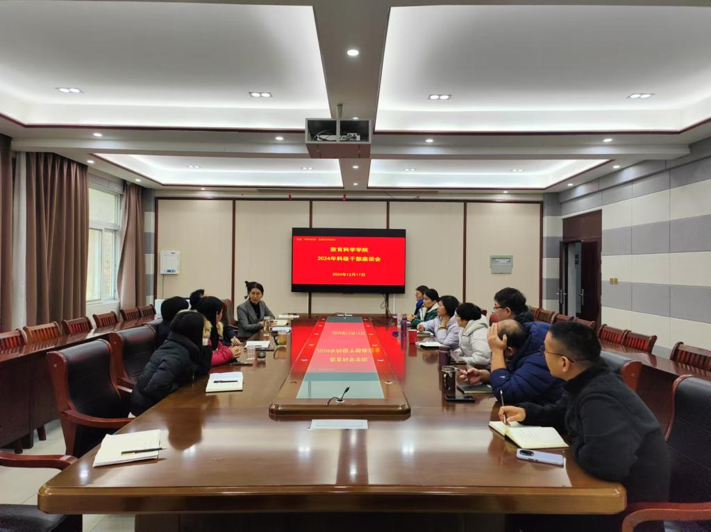 时间:2024-12-18 13:33:48 来源: 作者:杨艺卓 阅读: 次为进一步推进河南省“标杆院系”建设,充分发挥科级干部在教育博士授权点建设和学院事业发展中的作用,12月17日下午,我院于教科楼402会议室召开科级干部座谈会。会议由院党委书记房加帅主持,副院长孙天义及全体科级干部参加座谈。