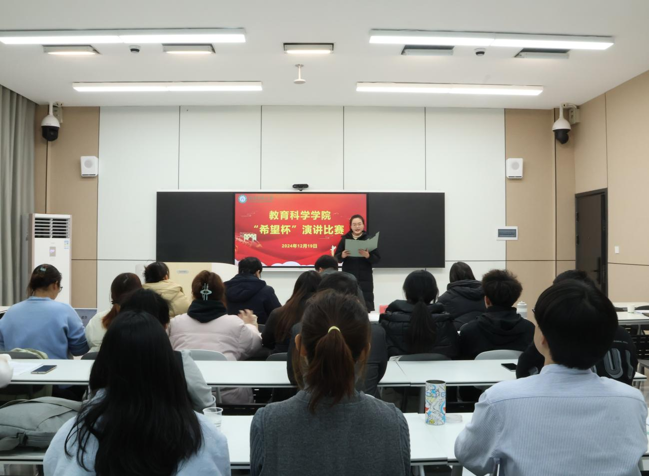 时间:2024-12-20 20:52:44 来源:教科院新闻宣传中心 作者:祐亚菊 蒋璐瑶 阅读: 次12月19日下午,williamhill威廉希尔“希望杯”演讲比赛决赛在教科楼109会议室开展,出席本次活动的领导老师有williamhill威廉希尔党委副书记缑星、副院长孙天义、科研与研究生工作秘书段海岑、专职辅导员杨艺卓。
