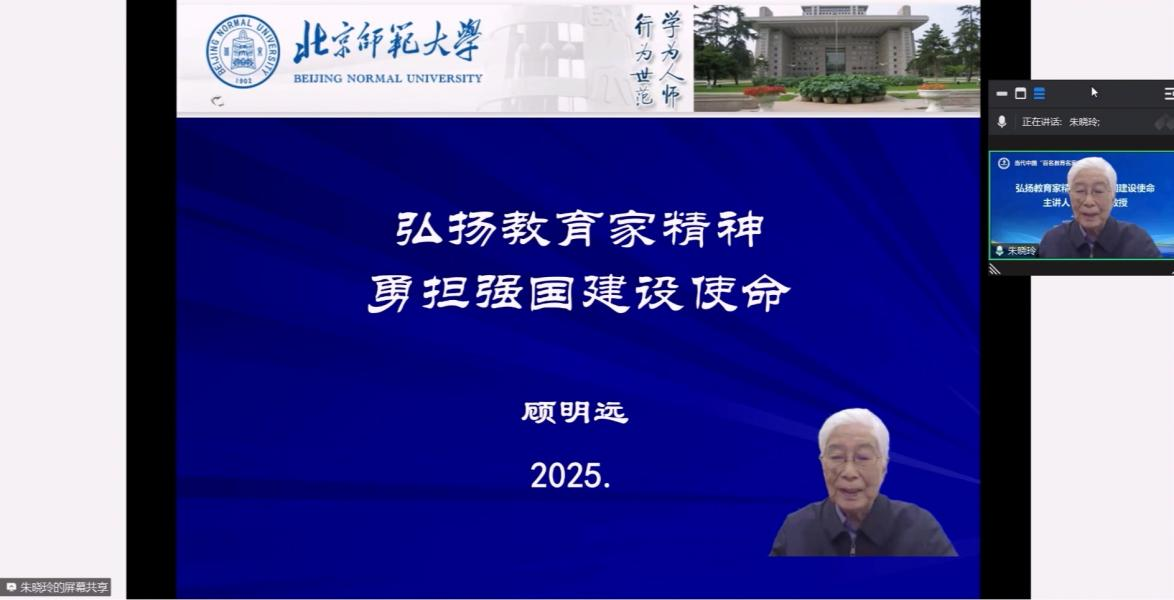 王文鹏在讲话中表示,顾明远教授以其高尚的人格魅力、深邃的学术智慧、卓越的育人理念和宽广的社会担当为大家上了一堂人生教育课,生动诠释了勇担强国建设使命的教育家精神。他强调,“当代中国‘百名教育名家’大讲堂”活动是我校深入贯彻党的二十大和二十届三中全会精神,贯彻落实《建设教育强国规划纲要(2024-2035)》实施教育家精神铸魂强师行动的重要举措,旨在邀请全国教育领域的杰出代表,分享他们的教育理念、实践经验和人生智慧,传承和发扬老一辈教育学家的精神财富,展现当代中国教育家在改革开放以来所取得的学术成就,促进中国教育学的学科发展。我校将以“教育名家彪青史 强国铸魂续新篇”为主题持续开展系列报告活动,持续推进教育家精神铸魂强师行动,打造支撑教育强国的高素质专业化教师队伍,为建设教育强国贡献力量。