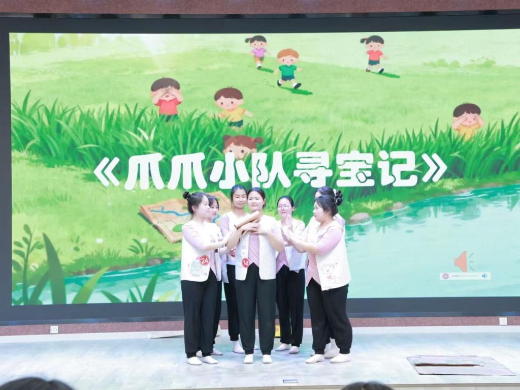 比赛中,同学们紧扣幼儿身心发展规律,以儿童视角为出发点,将艺术创意与教育意义深度融合。其中,《牙牙乐成长记》通过拟人化编排展现牙齿生长过程,简单易学的动作、明快活泼的节奏完美适配幼儿肢体特点,传递健康生活理念;而《保卫小树苗》以情景化叙事为核心,大学生编创者巧妙设计守护绿植的舞蹈情节,让孩子们在表演中理解环保意义;此外,《咩咩历险记》则凭借可爱的动物角色扮演、趣味十足的冒险剧情,搭配贴合幼儿认知的动作设计,赢得现场阵阵掌声。与此同时,《不做低头小宝贝》《不准吃那个苹果!》等作品,分别围绕健康用机、安全常识等主题展开,既保留童真童趣,又暗藏教育巧思。