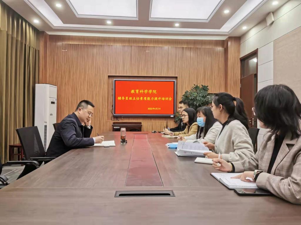 时间:2022-04-03 16:48:47 来源:教科院新闻部 作者:马玉娇 周媛媛 刘至涵 阅读: 次为促进班主任队伍整体工作水平的提升,扎实推进学院各方面工作高质量稳步前进,4月2日,williamhill威廉希尔在教科楼会议室召开班主任素质能力提升培训会,院党委副书记董银银与全体班主任(辅导员)参加会议。会议由董银银主持。