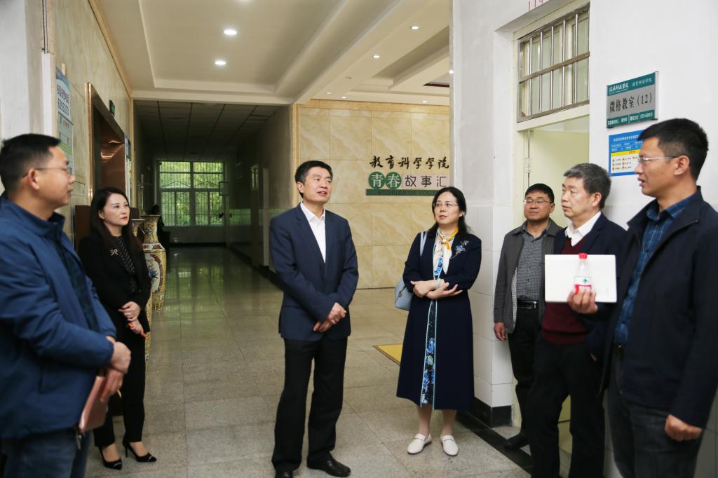 余本海实地查看学院微格教室等教学实践场所,详细了解我院教学运行、质量保障、设施维护、使用安全等情况,并听取有关部门现场汇报后,对进一步充分挖掘现有办学资源、改进教学服务功能等方面提出指导意见。