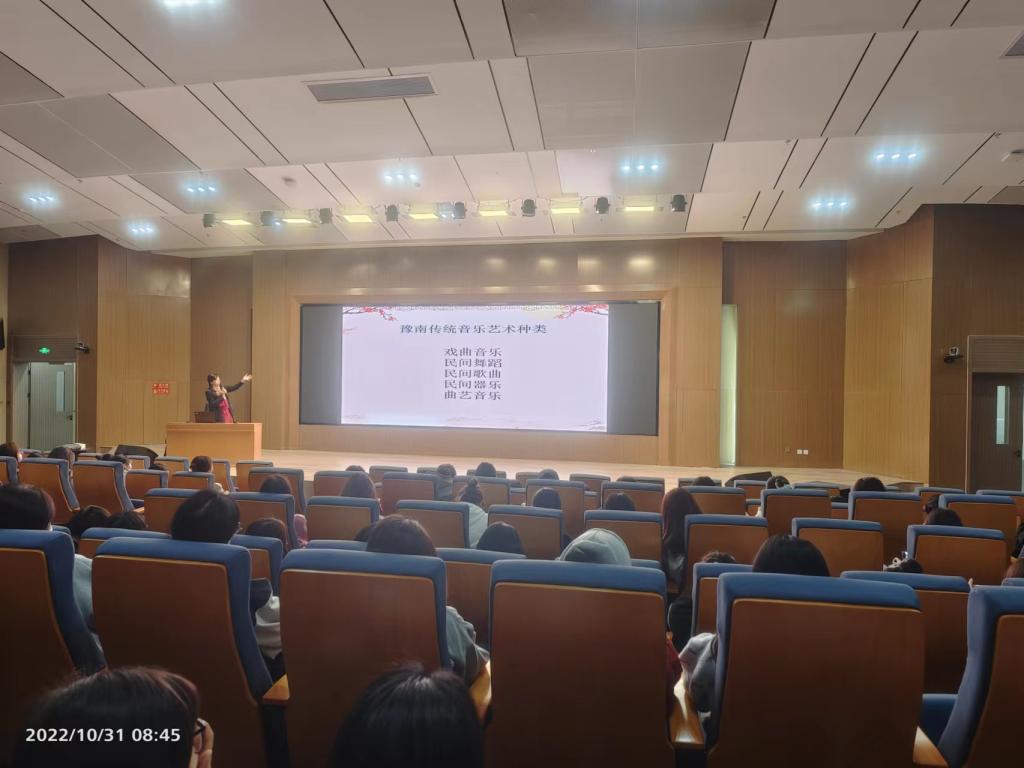 时间:2022-11-02 10:39:52 来源: 作者: 阅读: 次2022年10月31日,我校音乐与舞蹈学院郭德华教授应邀为淮河校区学前教育专业师生做“豫风楚韵吴声——豫南民间音乐文化随谈” 主题报告。