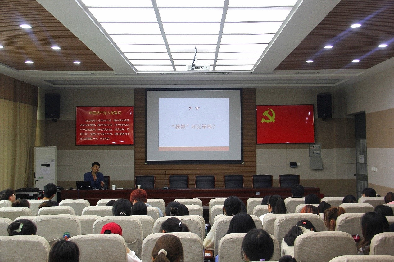5月5日,张建国老师以“榜样可以学吗”为引言向同学们分享了自己的求学经历,鼓励同学们通过教育去思考教育,从而做到明智,学会尊重自己。