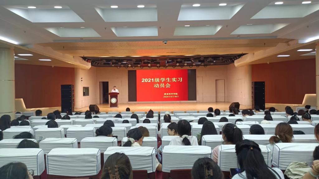 郭勇传达了学校教育实习工作会议精神,强调了教育实习在教师教育中的重要地位,以及教育实习在整个人才培养过程中的重要意义。要求学生在教育实习期间必须严格遵守实习纪律,尊重实习单位教师,虚心学习、积极实践,以确保实习取得预期成果。同时还提醒学生需注意实习期间的安全问题,确保个人的人身和财产安全。