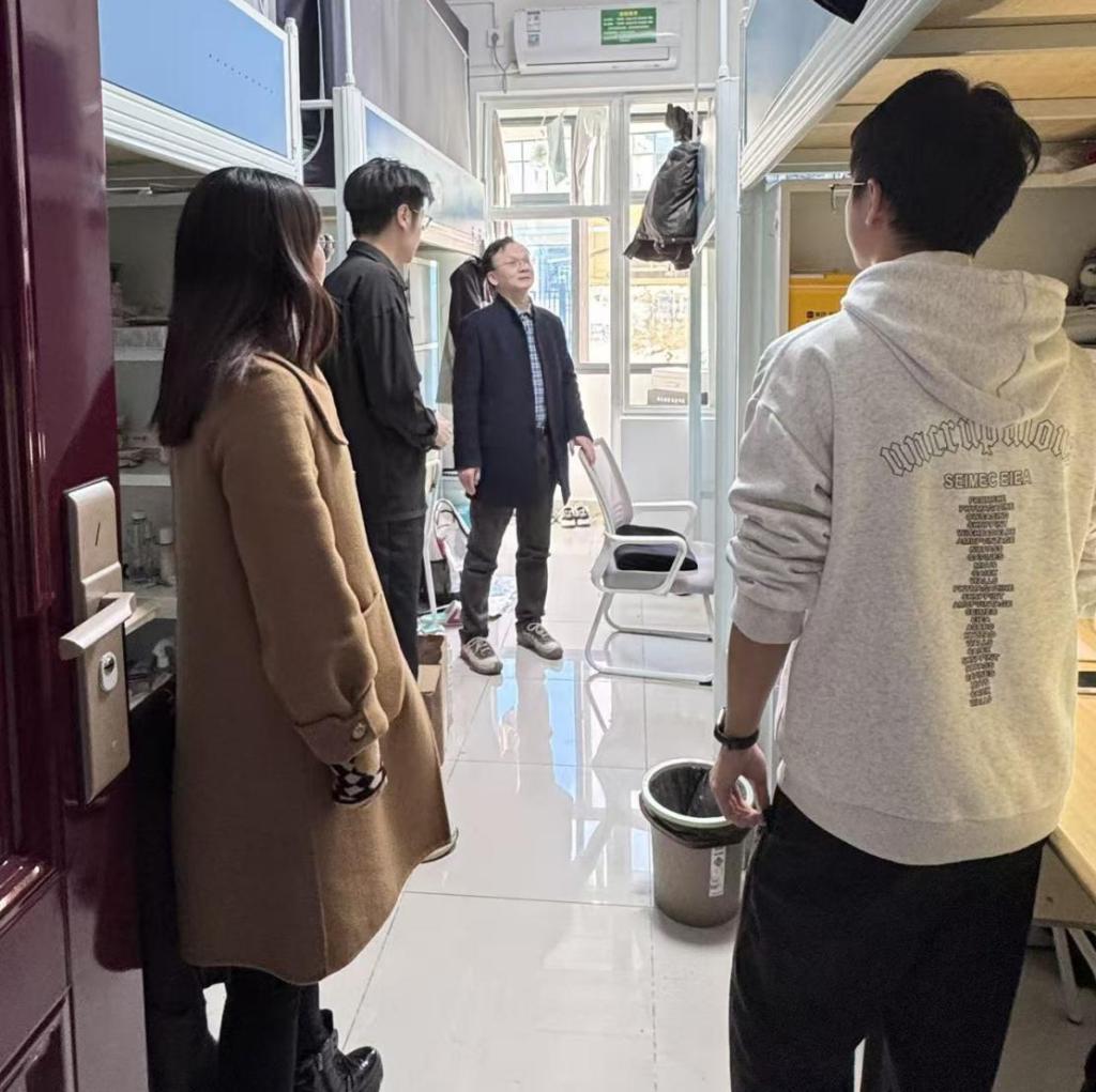 此次排查以“全覆盖、无死角、零容忍”为原则,重点针对学生宿舍内违规使用大功率电器(如热得快、电暖器、电饭煲等)、私拉乱接电线、插线板违规串联、易燃易爆物品存放、消防安全通道堵塞及宿舍内务卫生等关键问题进行细致检查。排查过程中,孙院长与同学们亲切交流,细致询问大家的住宿情况与生活需求。针对排查发现的安全隐患,要求相关学生即刻整改,并安排专人跟踪督办,确保整改工作落实到位。