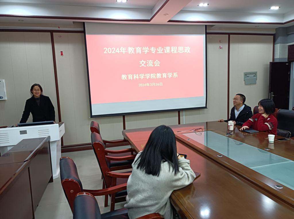 3月26日,教育学专业开展了教研室课程思政交流会,教研室邢思珍、杨建朝、谭文娟、黄亚栋、李辉辉等老师参加活动。